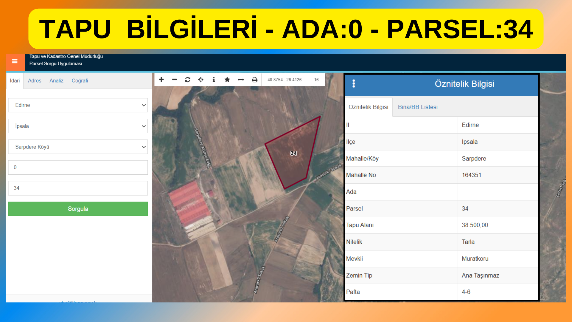 34 Parsel: 38.500 m2